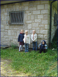 Nachdem sie das erste Zimmer in Beschlag genommen und sich ein wenig umgeschaut hatten, warteten sie ungeduldig auf die Ankunft aller anderen und hüpften mehrfach umsonst vor Freude in die Höhe, wenn zufällig ein Auto den Weg entlang gefahren kam. |