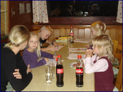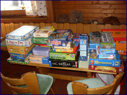 Man hörte aus allen Ecken der Hütte lachen, ratschen und gut gelaunte Kinder, die ihre Animateure rege wechselten. Sie wurden in den Wald gescheucht („vergesst die Brotkrumen nicht“), lernten die Hunde der Nachbarschaft kennen, malten oder spielten auch einmal das eine oder andere Spiel. |