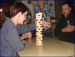 Im Laufe des Abends wurde gespielt und gelacht, neue Spiele gelernt und alte Klassiker wie z.B. Jenga wieder ausgebuddelt. Die Raucher konservierten sich auf der Veranda regelmäßig von innen, der Jägermeister lies auch nicht lange auf sich warten und so bekamen alle wenn überhaupt nur wenig Schlaf ab.