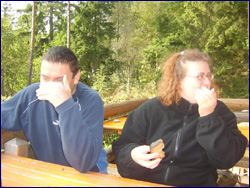 So saßen die BBler fröhlich mampfend, sich beschnuppernd, ratschend und tratschend zusammen und erholten sich erstmal vom Anreisestress. |