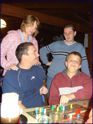 Nachdem sich alle den Bauch voll geschlagen hatten, gingen die lustigen Spielrunden weiter und das Lachen wurde immer lauter. 3 Liter Sangria und noch mehr Jägermeister taten ihr übriges und weit nach Mitternacht flossen nicht wenige Tränen und manch einer kämpfte mit Bauchschmerzen vor lauter Lachen.